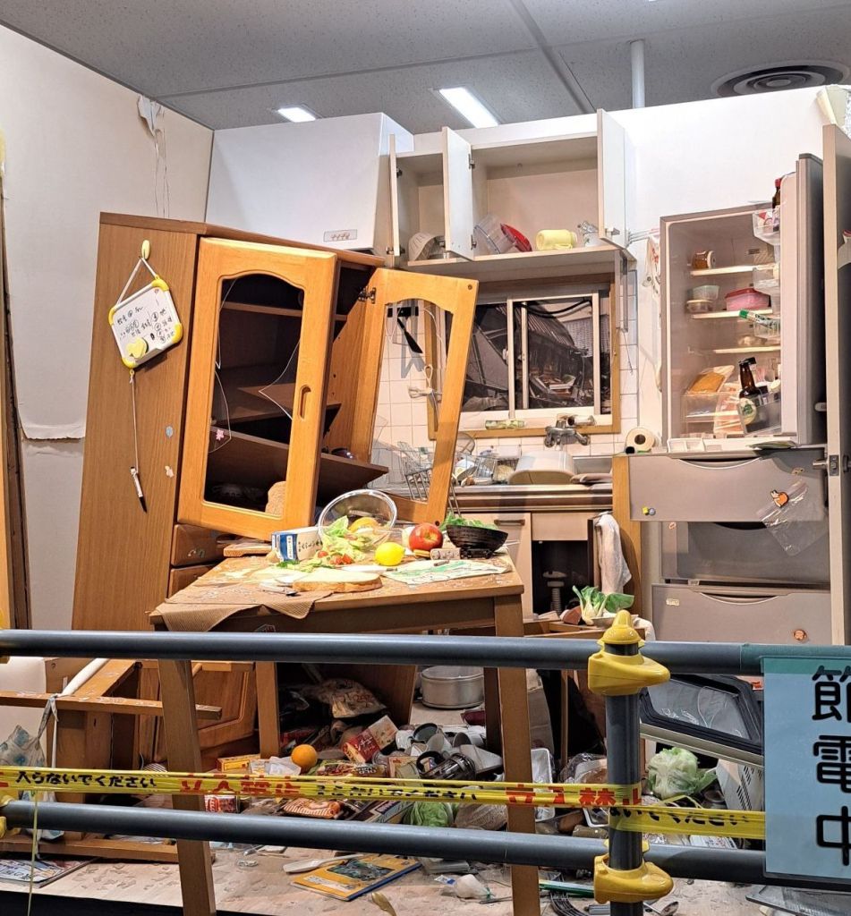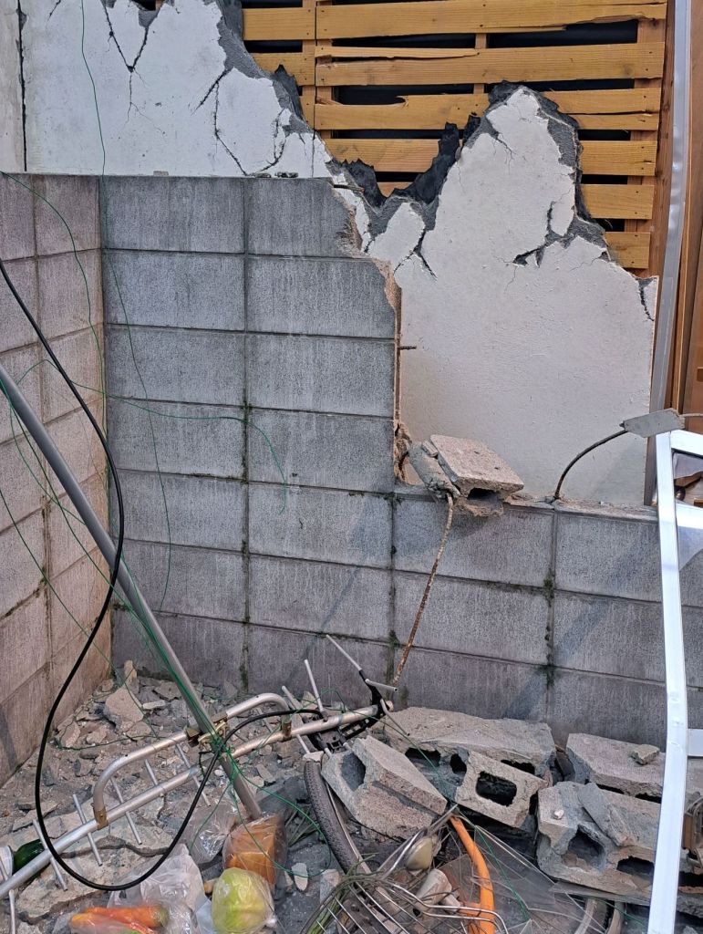 展示物は、地震後のキッチンや崩れたブロック塀など‥
