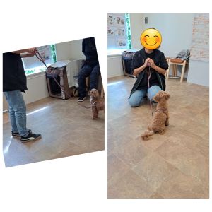 お次は、コロンちゃんの呼び戻しトレーニングです。最初は落ち着かない様子でたが、ママに呼ばれると、ちゃんとママの元に行きアイコンタクトも取れました👍️