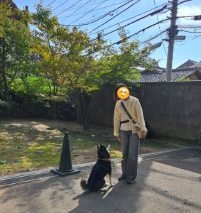 今回は屋外で、マナートレーニングを行いました。養源寺さんの敷地の一部をお借りしました。